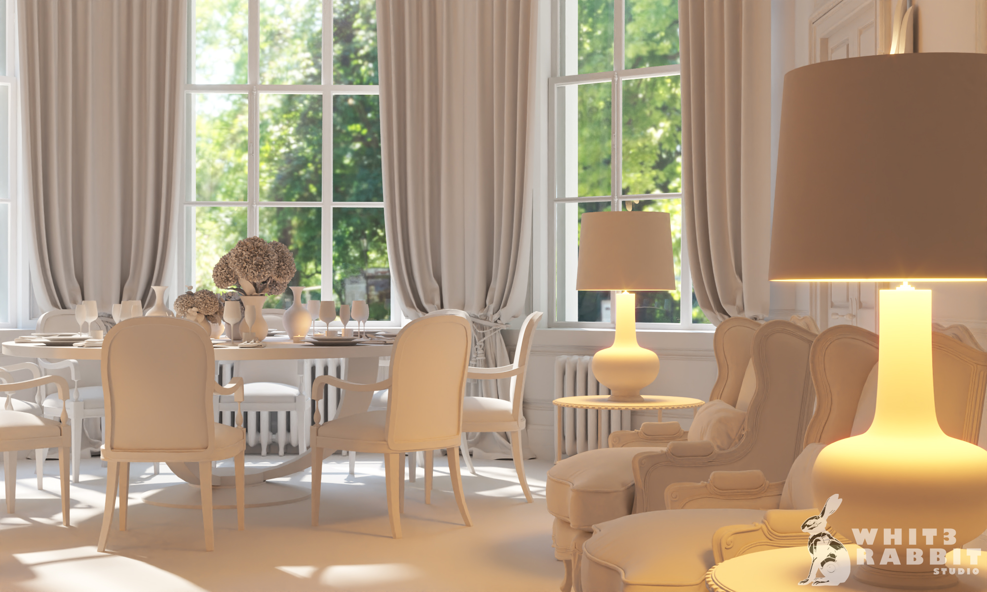 A white card render and some splash of colour